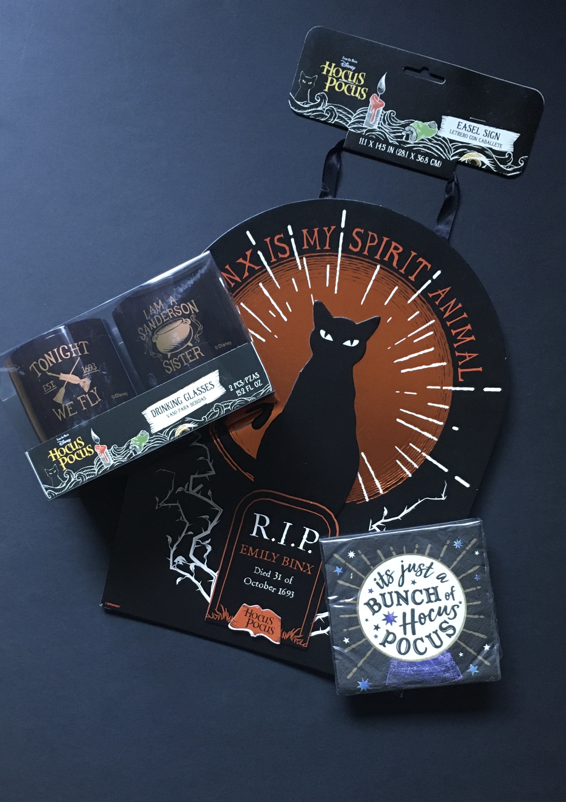 ***Please note: International shipping is NOT available for this item due to it's size. 1. Binx Is My Spirit Animal design cardboard sign. Size: 28cm x 36cm 2. Two pack of Plastic Stemless Glasses 15.2oz. Purple with gold print designs (a) Tonight we fly & (b) I am a Sanderson sister. 3. It's just a bunch of Hocus Pocus Beverage napkins pack of 16