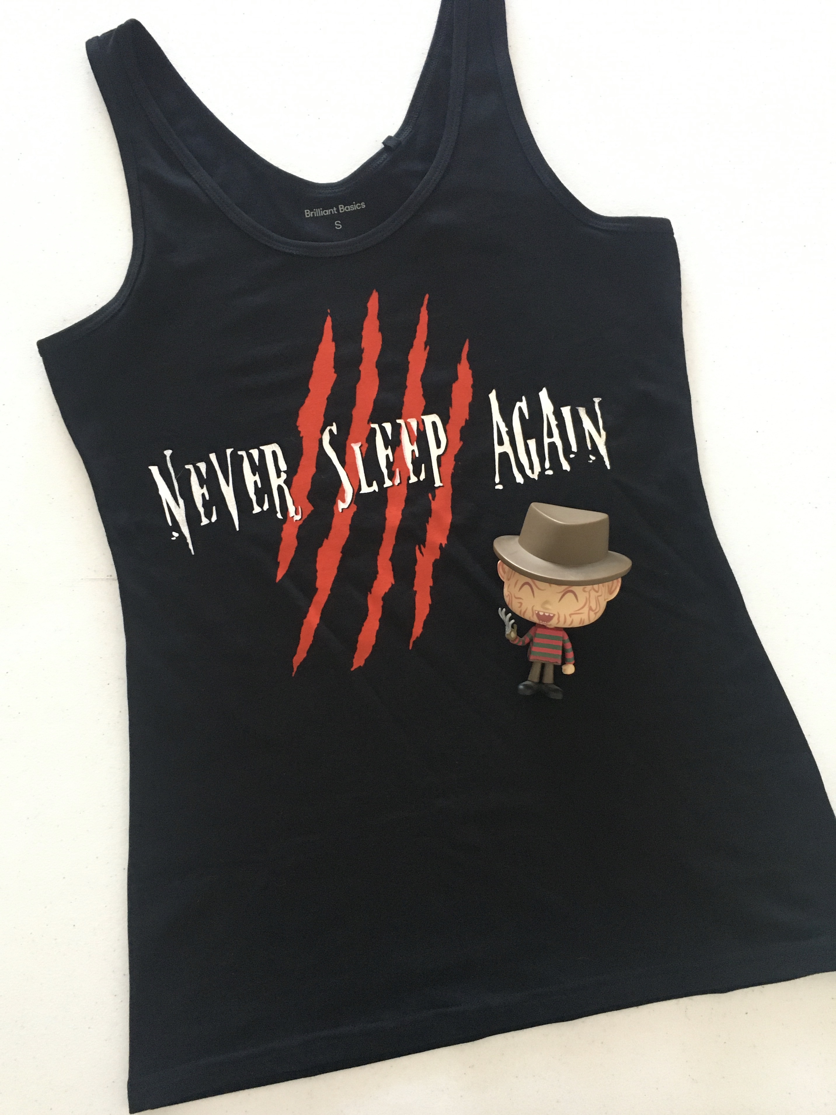 Screen printed with our Freddy inspired design as featured in our Horror box & exclusive to All Hallows Club. Womens Cotton Elastane